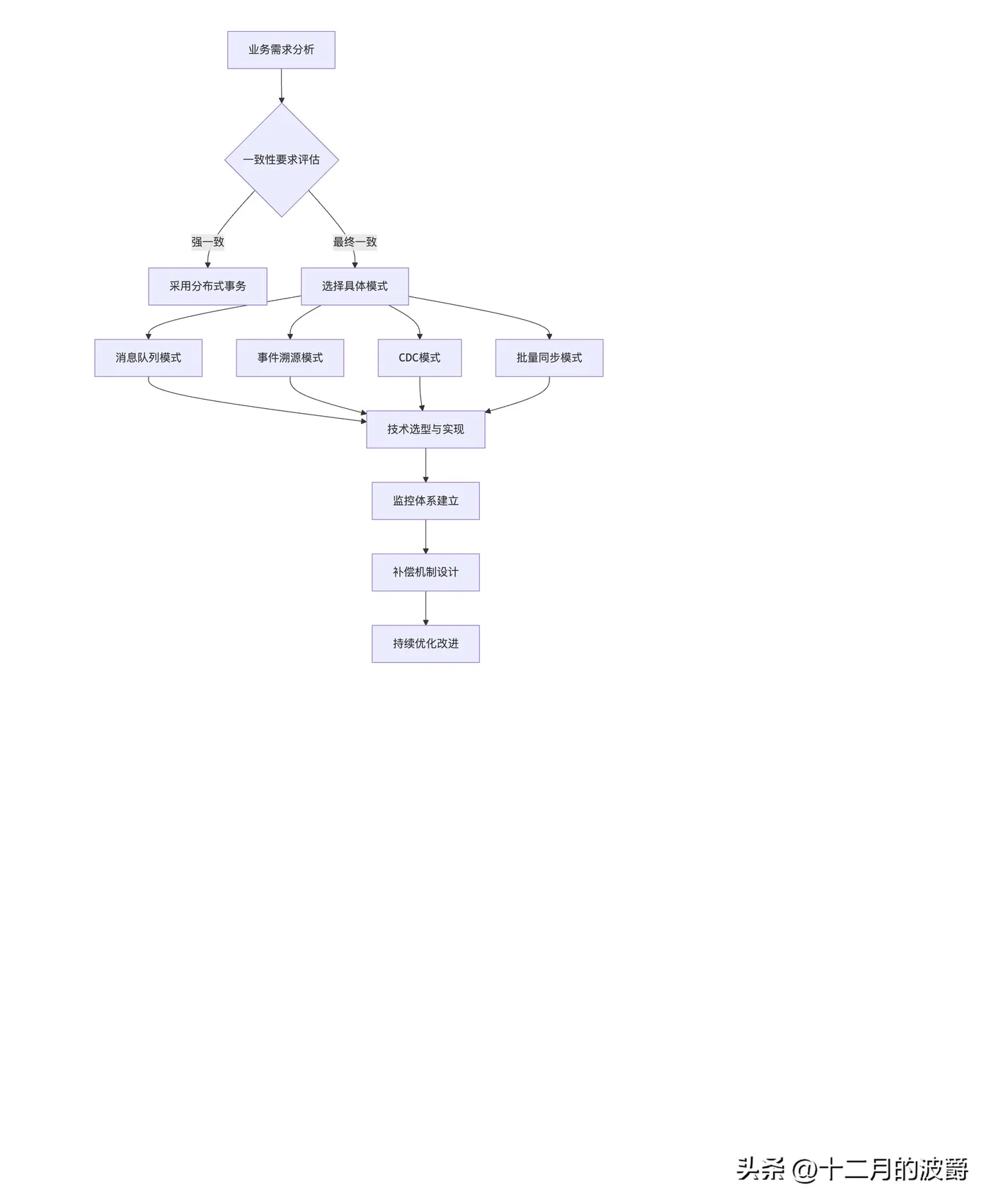 // 最终一致性模式选择决策树 @Service public class ConsistencyPatternSelector { public ConsistencyPattern selectPattern(ConsistencyRequirements requirements) { // 决策矩阵 if (requirements.isHighThroughputRequired()) { if (requirements.isOrderingRequired()) { return ConsistencyPattern.EVENT_SOURCING; // 事件溯源 } else { return ConsistencyPattern.MESSAGE_QUEUE; // 消息队列 } } else { if (requirements.isRealTimeRequired()) { return ConsistencyPattern.CDC; // 变更数据捕获 } else { return ConsistencyPattern.BATCH_SYNC; // 批量同步 } } } public enum ConsistencyPattern { MESSAGE_QUEUE("消息队列", "高吞吐,松耦合,需要处理消息顺序"), EVENT_SOURCING("事件溯源", "强审计,可重建,存储成本高"), CDC("变更数据捕获", "实时性高,对业务无侵入,依赖数据库"), BATCH_SYNC("批量同步", "实现简单,延迟高,资源消耗大"); private final String name; private final String characteristics; ConsistencyPattern(String name, String characteristics) { this.name = name; this.characteristics = characteristics; } } }