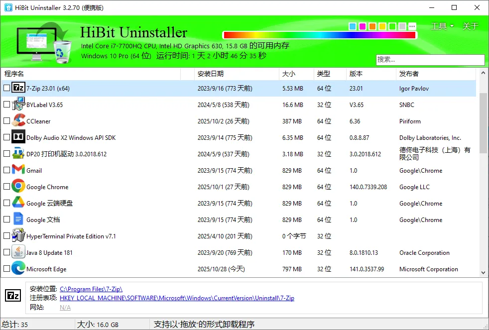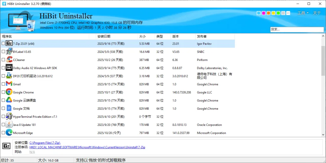 卸载软件的原因很多,有的是为了重新安装,所以要卸载干净,有的就是不想用了,系统自带的卸载功能只是把程序从系统中卸载掉了,有些在磁盘中的文件、程序关联的注册表、服务、任务计划等也都还有残留文件存在,有的可能是注册表信息,有的可能是一些没用的多余文件。这个时候还是要用第三方卸载软件才能解。