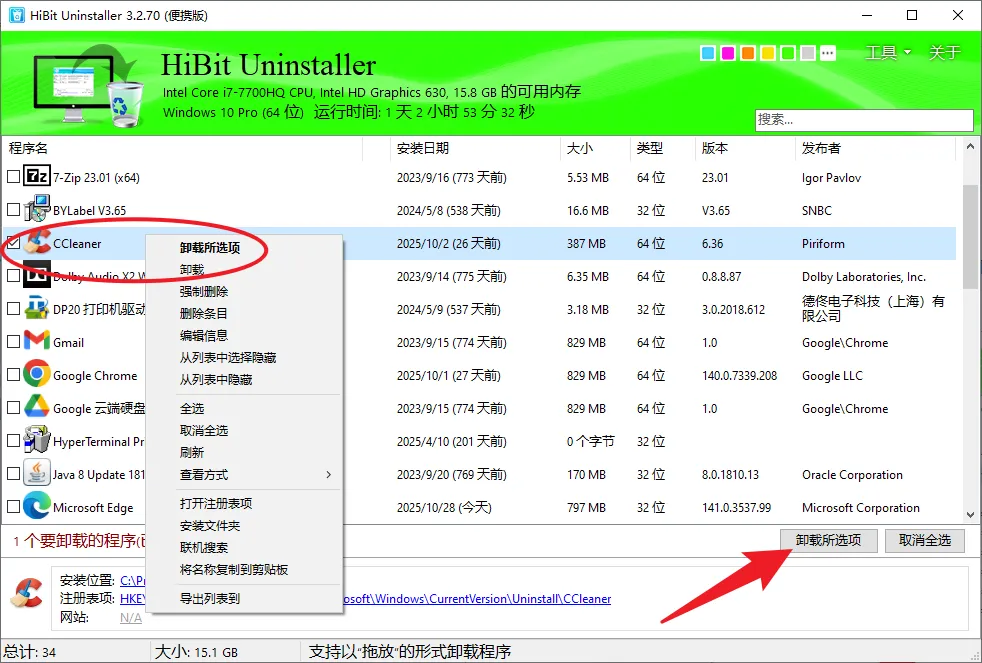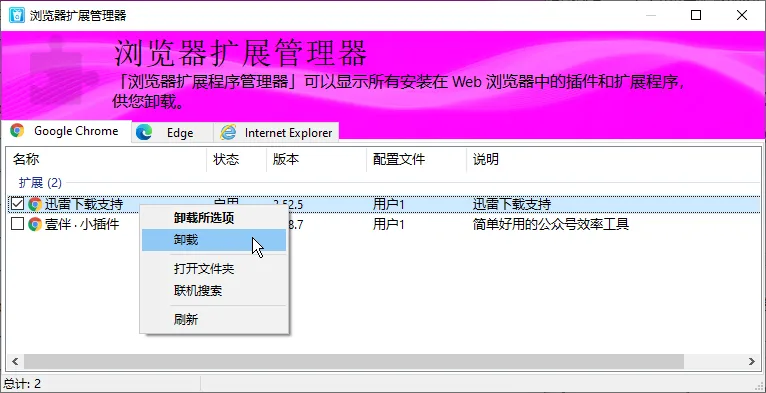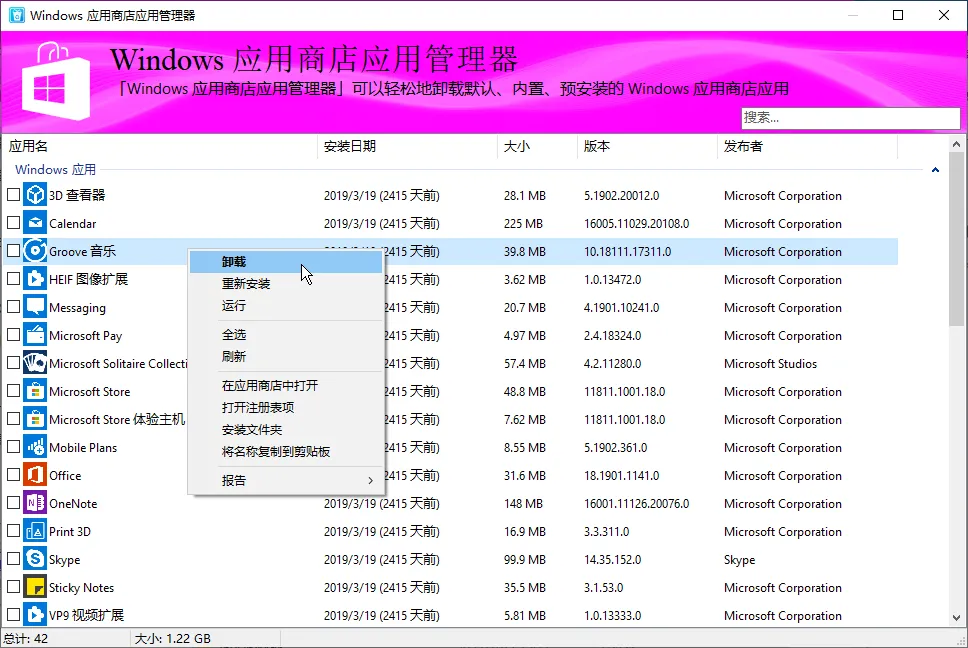 选择要卸载的软件,右键就会弹出所有可操作的列表,选择卸载所有选项,可以做一些基本设置