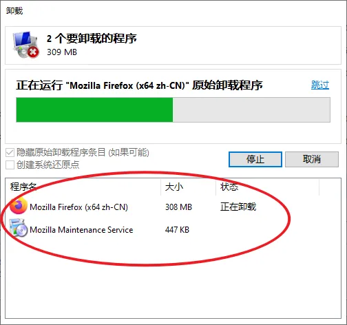 可以看到一系列的卸载相关的文件都在这里了,一个程序可能有很多残留信息,都在这里全部卸载了