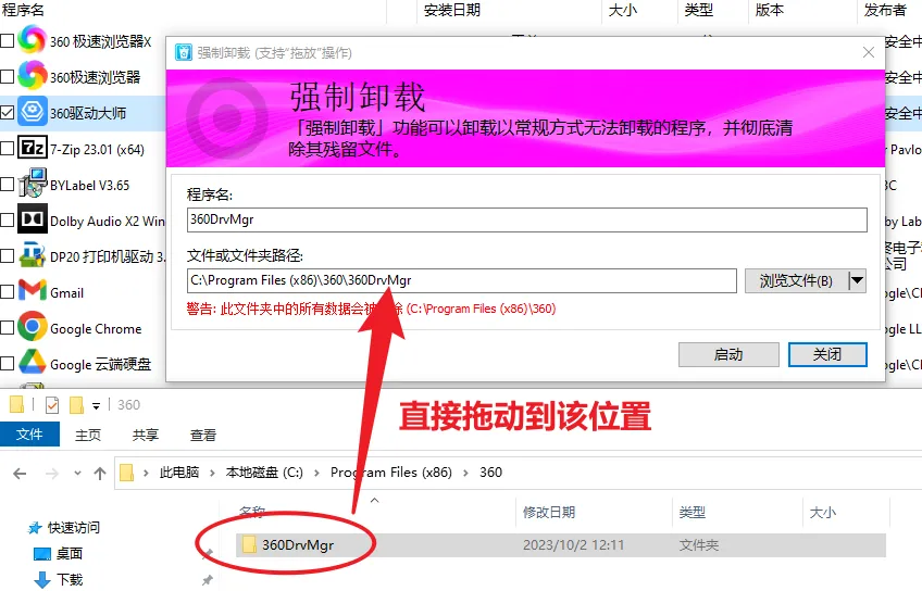 强制卸载,就是当某个软件真心卸载不了,或者提示文件正在使用等一系列卸载不了的情况使用的