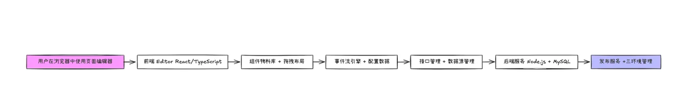 | Marsview | 中后台低代码可视化平台 | 拖拽组件+事件流+接口管理+发布回滚 | 后台系统、企业内部工具 |