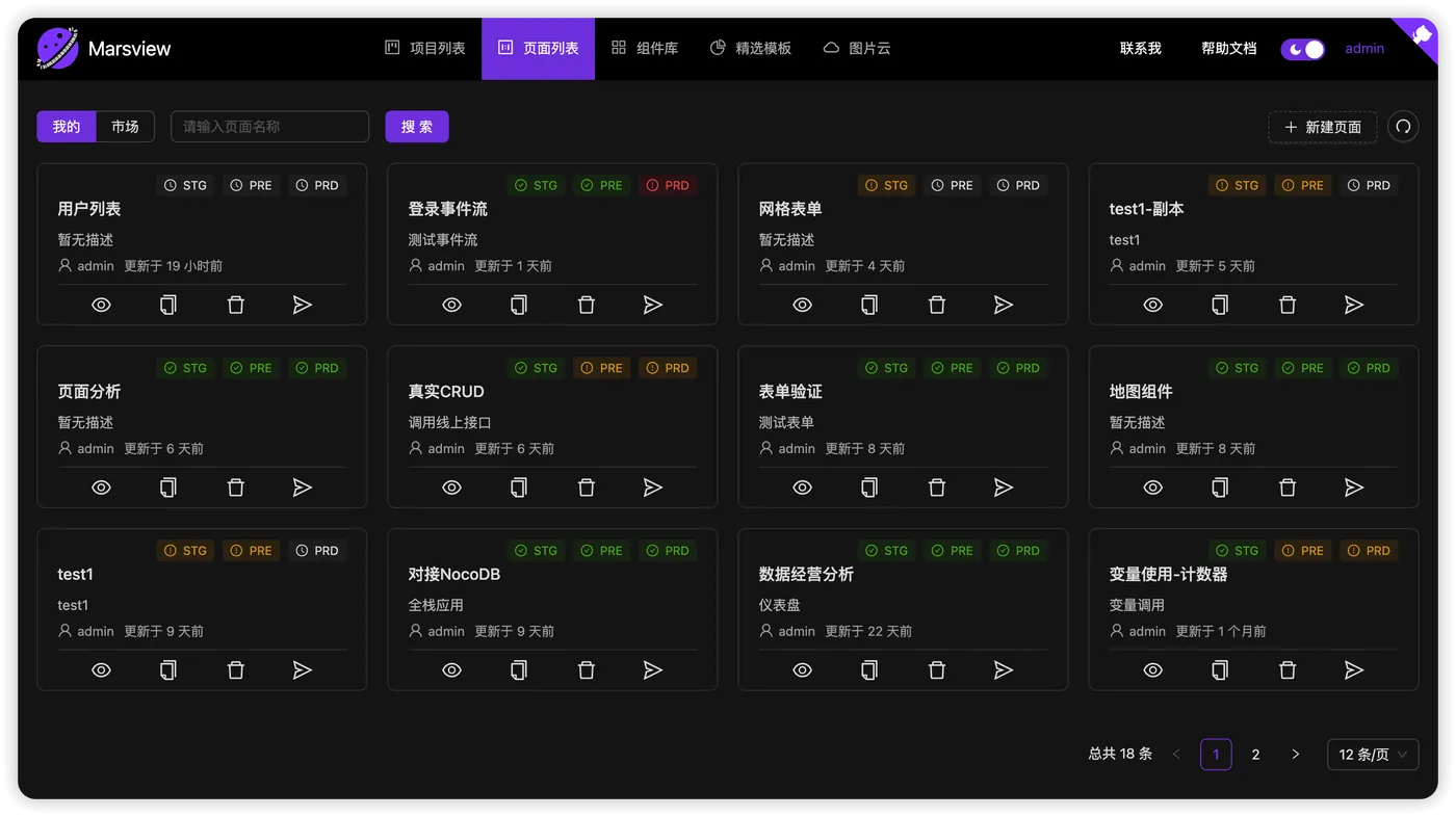 简而言之:如果你需要快速构建后台管理系统、业务平台、仪表盘或中台系统,Marsview 提供了可视化拖拽、逻辑配置、接口管理、数据联动、发布回滚等能力,显著提升开发效率。