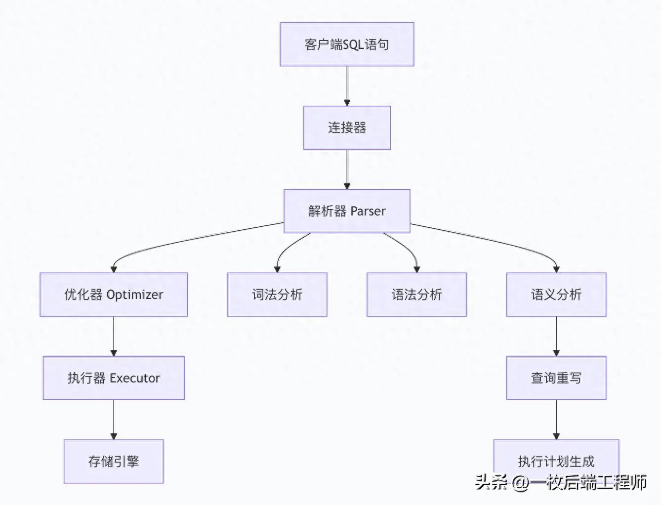 词法分析器将SQL字符串分解为标记(Tokens) 序列,识别关键字、标识符、常量等。