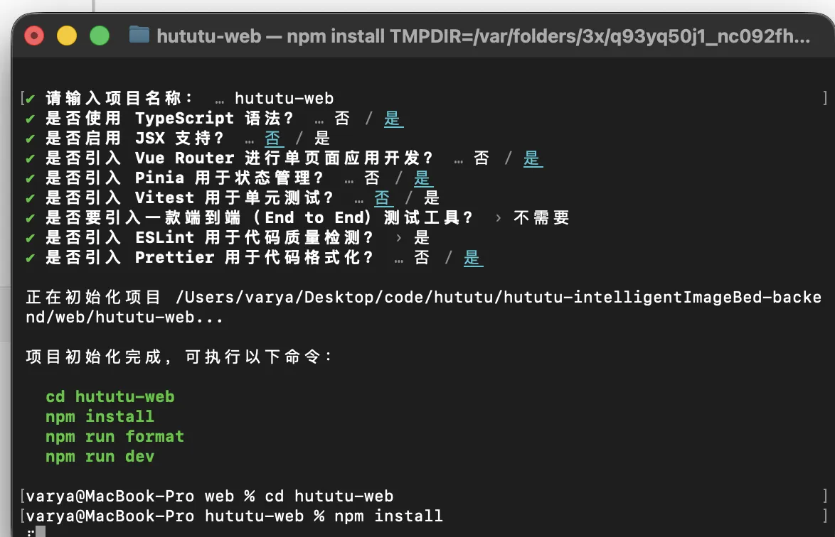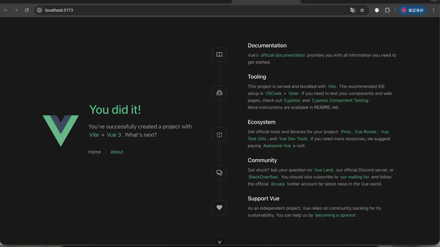 npm create vue@latest # 创建 npm install # 下载依赖 npm run dev # 启动项目