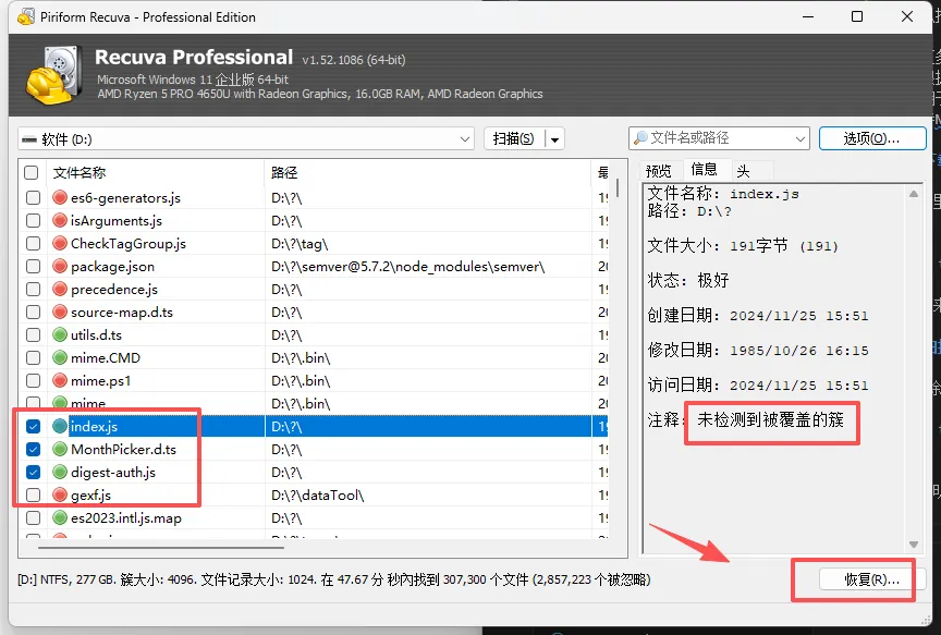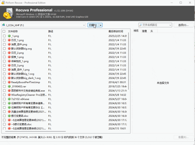 其实已经扫描出一大批删除文件,感觉功能也比较简单,我就不讲使用方法了, 功能见下面的介绍。