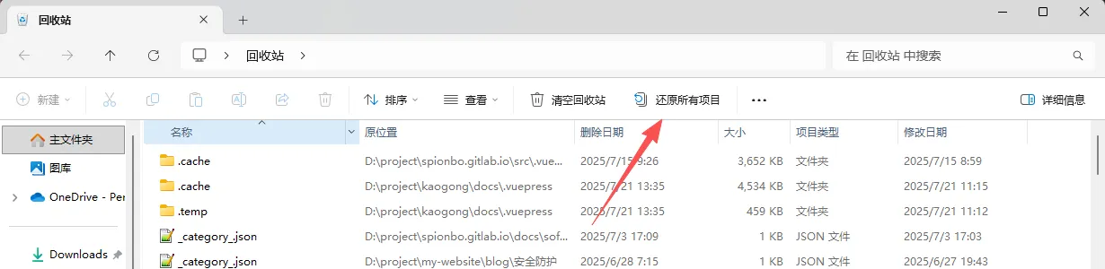 从回收站还原: