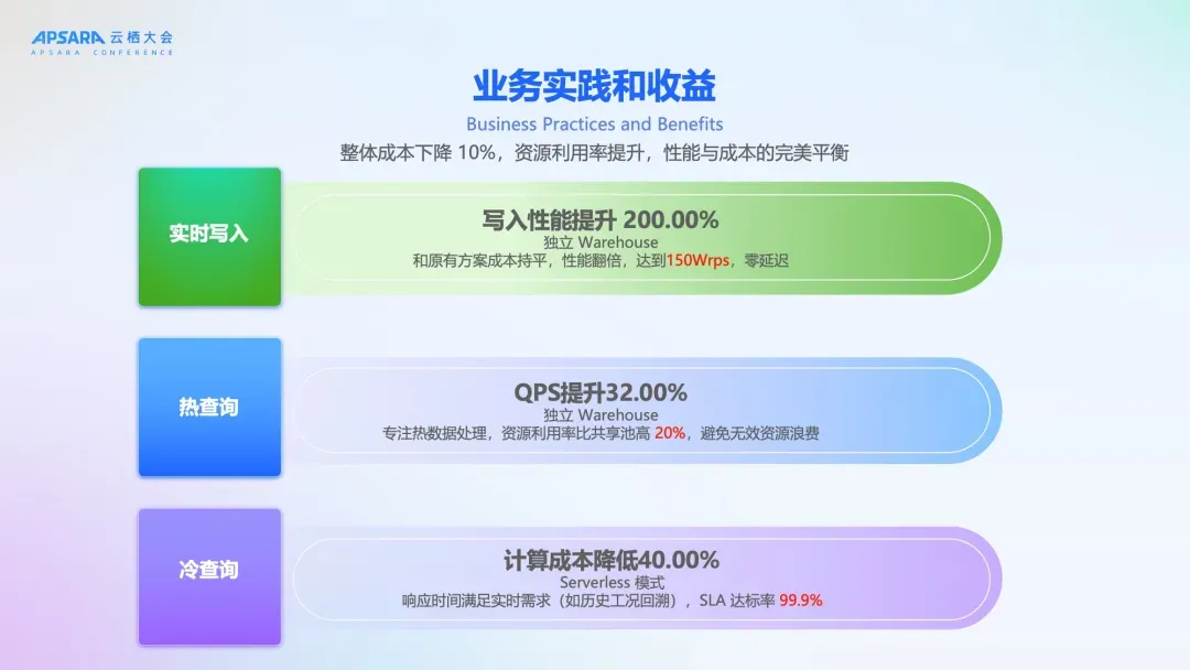 - QPS提升32%:热查询使用独立 Hologres Warehouse,专注热数据处理,资源利用率比共享池高20%;