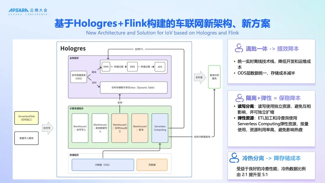 为应对上述挑战,理想汽车于2024年底启动技术架构升级,全面引入阿里云 Hologres+ Flink,构建“弹性、高可用、低成本”的新一代车联网数据平台。