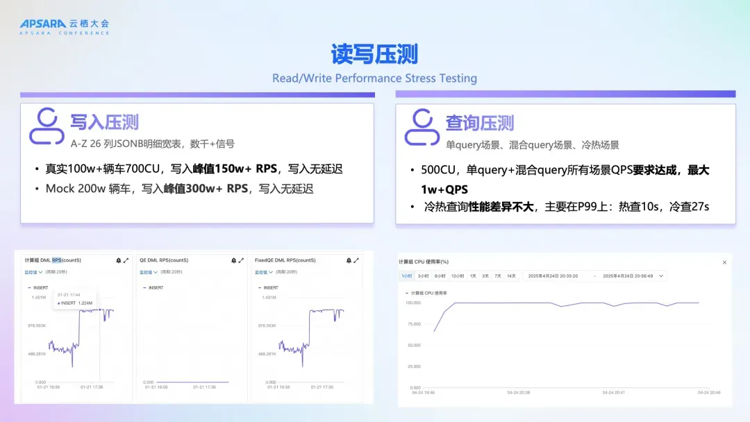 - 真实100万+辆车场景下,700CU资源支撑150万+ RPS,写入无延迟;