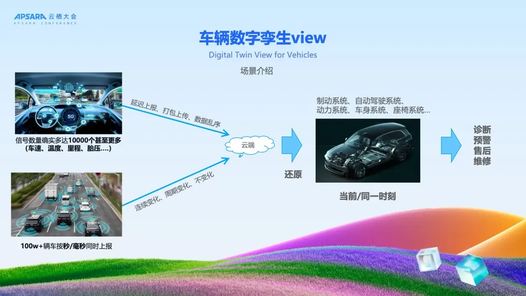 “车辆数字孪生 View”是理想汽车的核心业务场景:在云端实时还原每一辆车在同一时刻的所有信号状态,用于故障诊断、自动驾驶监控、售后维修支持及工况回放仿真。