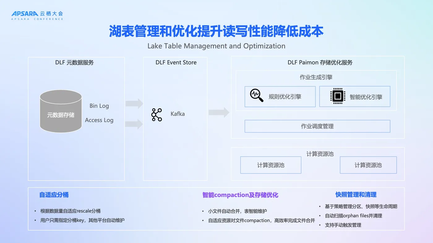 DLF 3.0内置智能优化引擎,自动处理湖表维护中的复杂问题,这些能力大幅降低用户运维负担,让Lakehouse真正“开箱即用”。