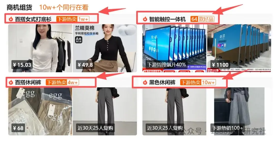 从“人找货”到“货找人”:商机品的核心逻辑之变。1688商机品的本质,是1688利用其强大的大数据和AI能力,对海量采购商行为进行深度挖掘与分析后,精准地识别出的当前市场需求旺盛、搜索频繁、但供给相对不足的商品机会。