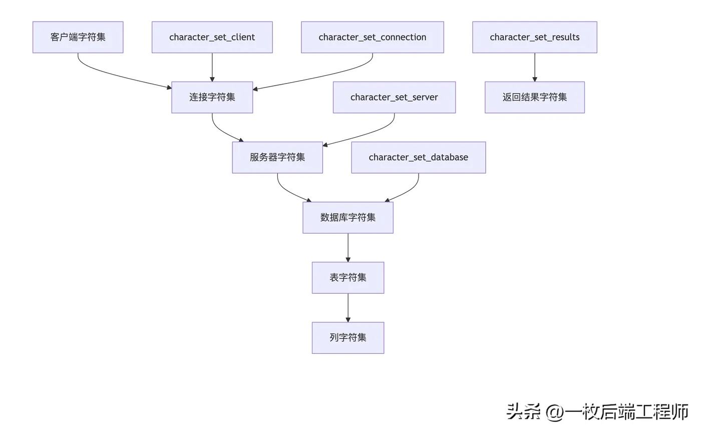 -- 查看MySQL支持的字符集 SHOW CHARACTER SET; -- 常见字符集演进 SELECT 'ASCII (1963)' as charset, '英文字符,7位' as description UNION ALL SELECT 'Latin1 (ISO-8859-1)', '西欧语言,8位' UNION ALL SELECT 'GB2312 (1980)', '简体中文,双字节' UNION ALL SELECT 'GBK (1995)', '扩展中文,双字节' UNION ALL SELECT 'UTF-8 (1996)', 'Unicode,变长1-4字节' UNION ALL SELECT 'UTF8MB4 (MySQL 5.5+)', '完整Unicode,支持emoji';