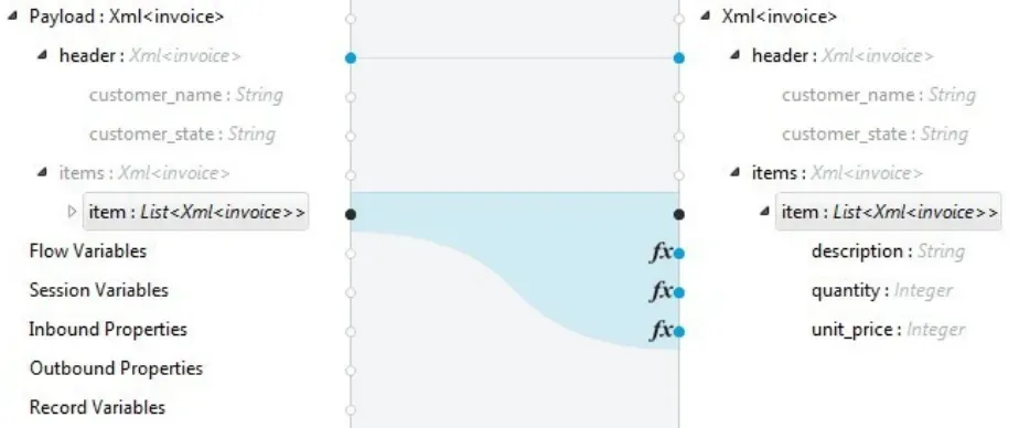 产品上可以基于该特性实现 JSON 映射规则。让用户可以便捷地定义从一个模型向另一个模型的映射关系。以下是钉钉连接平台基于该能力实现的模型映射产品图: