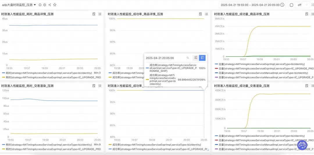 结合淘天时效产品在线上的测试结果,脚本平均RT在 100us 以内: