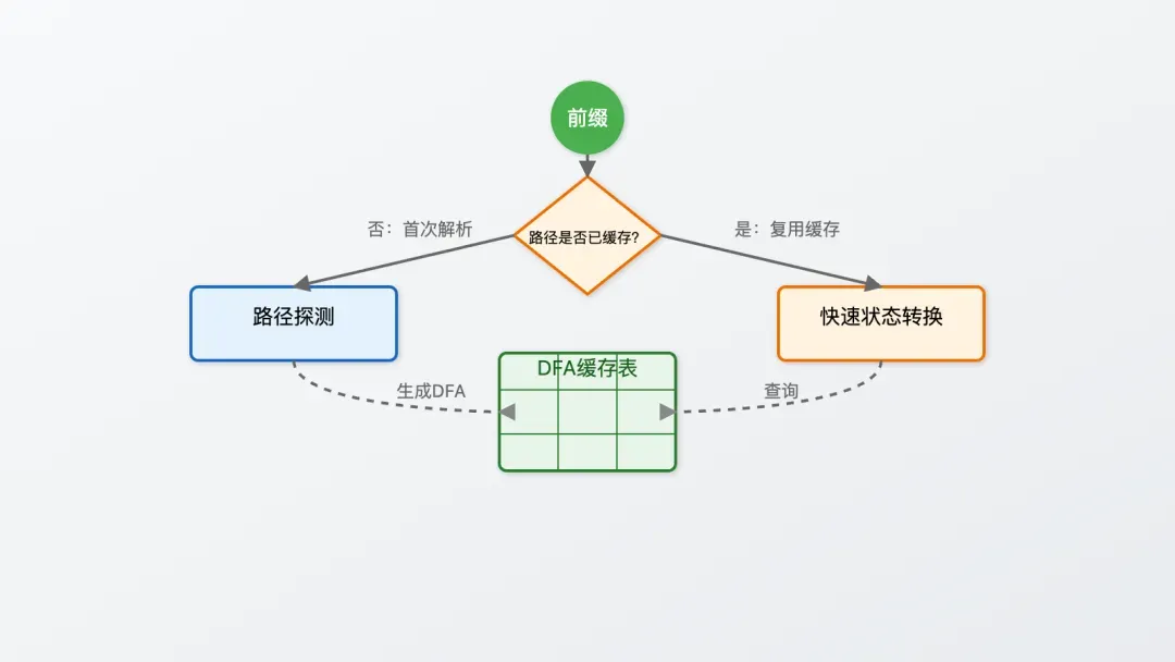 在编译链路上,我们将原本自研的自动语法分析器更换成了生态和性能更好的 Antlr4。Antlr4基于ALL算法实现,能够自动将探测过的路径缓存成 DFA 状态机,缓存到表中,下次碰到相同前缀就直接查表。第二次再走过这个路径时,性能就逼近手写状态机。缺点就是第一次走解析路径时性能会较差,不过我们在类初始化时会对常见路径进行一次初始化,保证第一次运行时,性能也是可接受的。