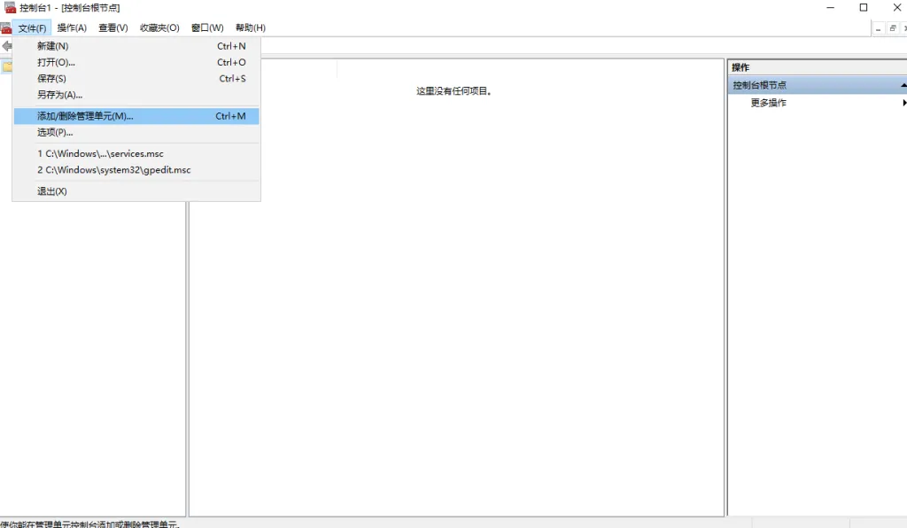 点击菜单栏中的 “文件” — “添加/删除管理单元”