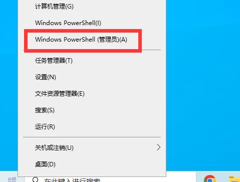 右键 Windows 微标键,选择 Windows PowerShell (管理员)