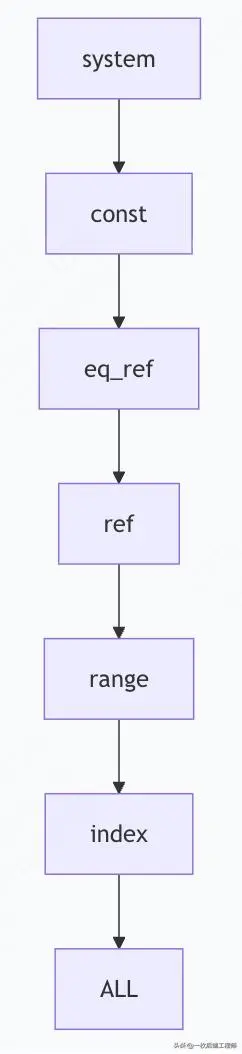 -- const: 通过主键或唯一索引定位单条记录 EXPLAIN SELECT * FROM users WHERE id = 1; -- type: const -- eq_ref: 多表关联时,使用主键或唯一索引 EXPLAIN SELECT * FROM users u JOIN orders o ON u.id = o.user_id WHERE o.order_no = 'ORDER123'; -- users表: eq_ref -- ref: 使用非唯一索引扫描 EXPLAIN SELECT * FROM users WHERE status = 'ACTIVE'; -- type: ref (如果status有索引)