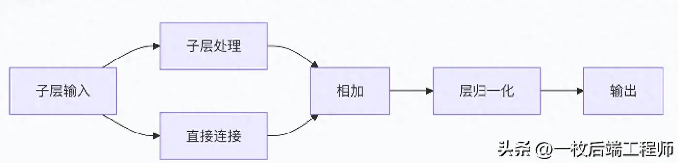 原始信息 ──────┐ ↓ 子层变换 → 残差相加 → 层归一化 → 稳定输出