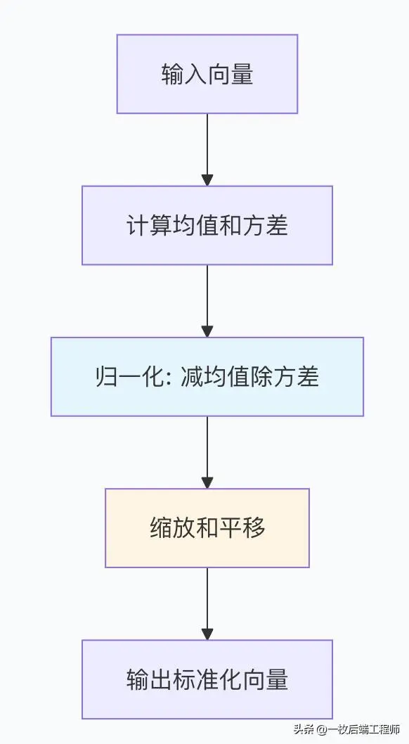 均值 = mean(输入) 方差 = var(输入) 归一化 = (输入 - 均值) / sqrt(方差 + ε) 输出 = γ × 归一化 + β