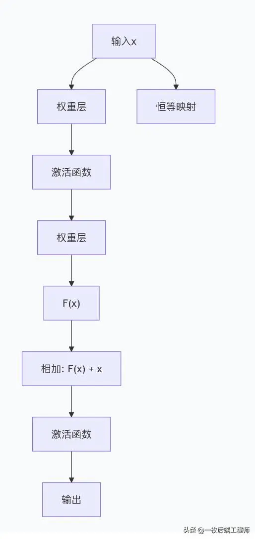 核心定义:残差连接是一种跳跃连接技术,它将某一层的输入直接"跳过"该层,与该层的输出相加。