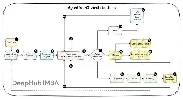 Agentic AI系统能独立规划任务、执行多步骤操作、调用各种工具,并根据结果动态调整策略,远不止聊天机器人那么简单。核心能力包括:LLM推理、工具使用(API、数据库、代码执行)、记忆系统、决策循环。