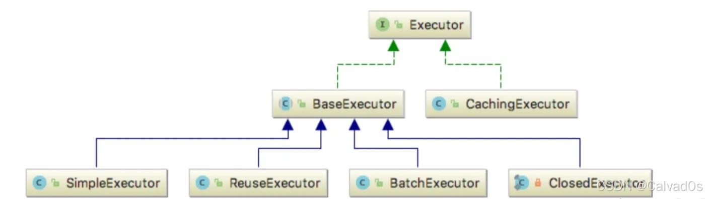 SqlSession 是 MyBatis 对 SQL 执行的封装,真正的 SQL 处理逻辑要通过 Executor 来执行。Executor 有多个实现类,因为在查询之前,要先 check 缓存是否存在,所以默认使用的是 CachingExecutor 类,顾名思义,它的作用就是二级缓存。