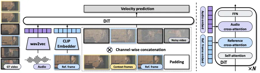| 核心思路 | 稀疏帧视频配音:整段编辑、参考关键帧、上下文衔接 | 实时高质量口型同步(VAE 潜空间修复) | 基于潜空间扩散的端到端口型同步 | InfiniteTalk 强调全身/表情协同而不止嘴部 |
