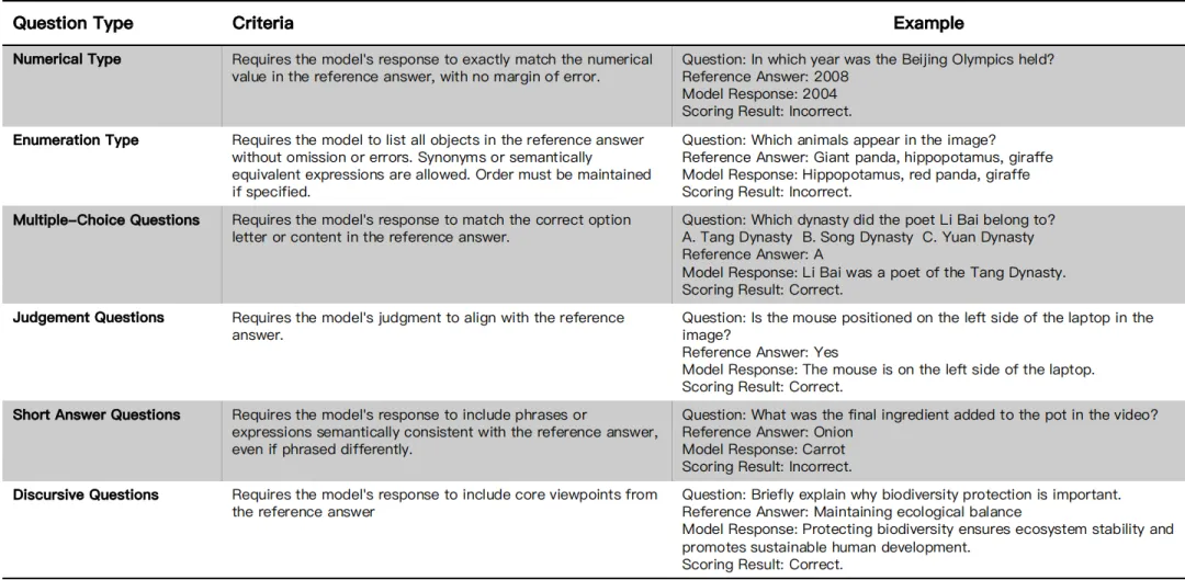 (说明:该图表展示了为提高评分准确率而定义的六种细分问题类型及其判断标准。)