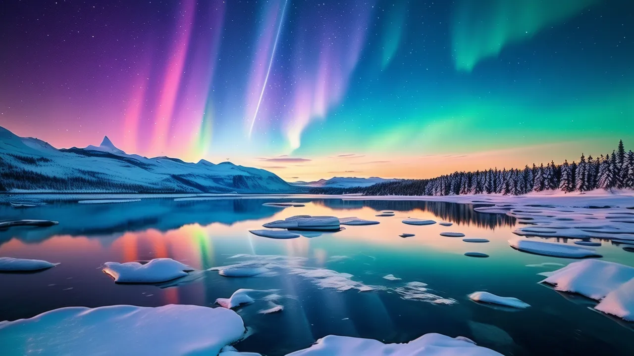 示例生成的文案:极光在晨曦中缓缓舞动,淡绿色与紫色的光带如丝绸般飘荡在深蓝色的天空。太阳刚刚升起,金色的光芒从地平线洒下,照亮了覆盖着薄霜的雪原。冰湖倒映着绚丽的极光与初升的太阳,整个画面充满神秘与宁静,空气中弥漫着清冷而纯净的气息。