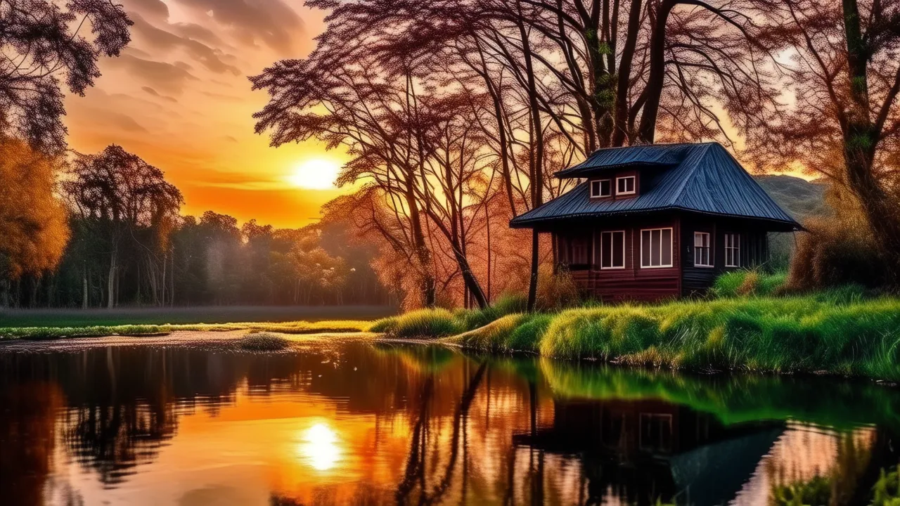 关键词:森林, 绿洲, 日落, 乡村小屋