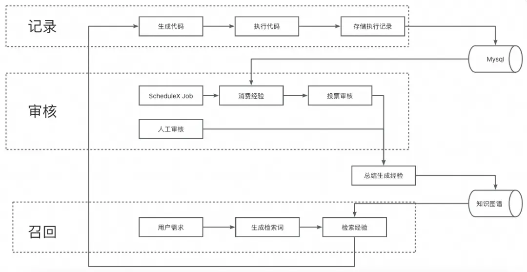 在Agent运行过程中, 收集一切有用的信息,随后在完成运行后,通过 LLM 或者各种解析逻辑加工成一段文本、一个json,代表本次执行的起因、经过、结果、思考等信息。随后存储到数据库中(不仅局限于向量数据库)。在Agent运行阶段,将用户文本做简单加工,随后进行检索。 只不过在工程层面,检索过后的结果,可以用作“回放”,可以用作“Prompt”拼接。单纯的向量数据库检索,不一定能让经验检索变得准确,我们目前正在向图索引的方向探索,让图谱的能力辅助经验的检索与加工。