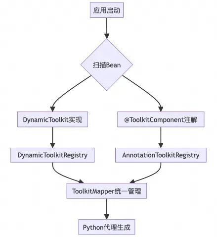 - 独立注册表 : DynamicToolkitRegistry和AnnotationToolkitRegistry分别管理两类工具包;