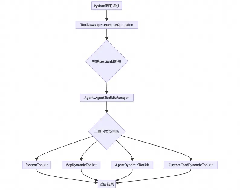 - 动态路由 : 通过sessionId找到对应的Agent3实例,再通过Agent的AgentToolkitManager来执行具体操作;