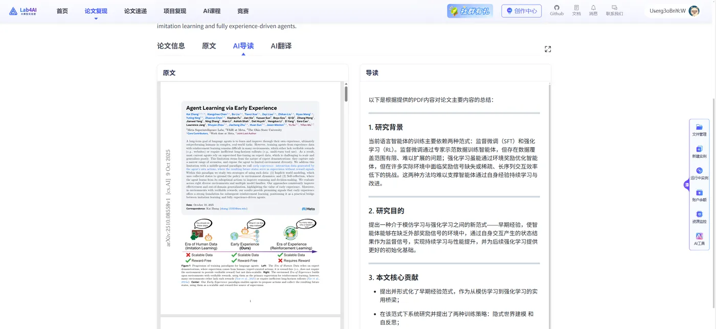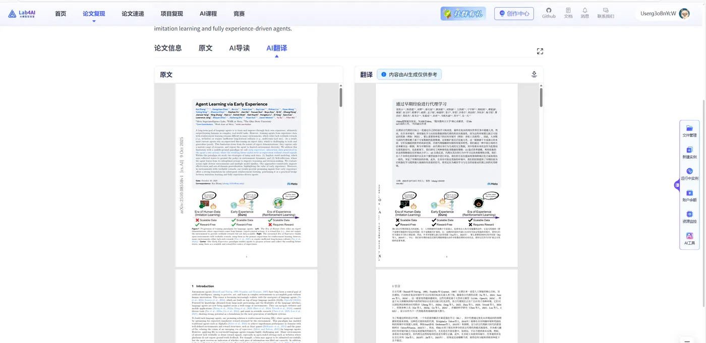 - Lab4AI.cn提供免费的AI翻译和AI导读工具辅助论文阅读;