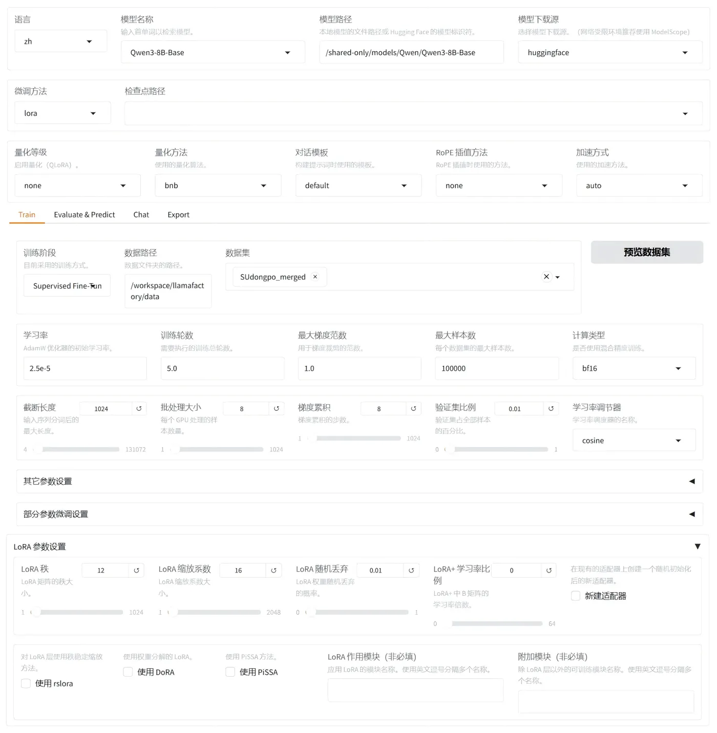 我们选用了LLaMA-Factory微调框架,来构建沉浸式苏东坡角色扮演大模型。