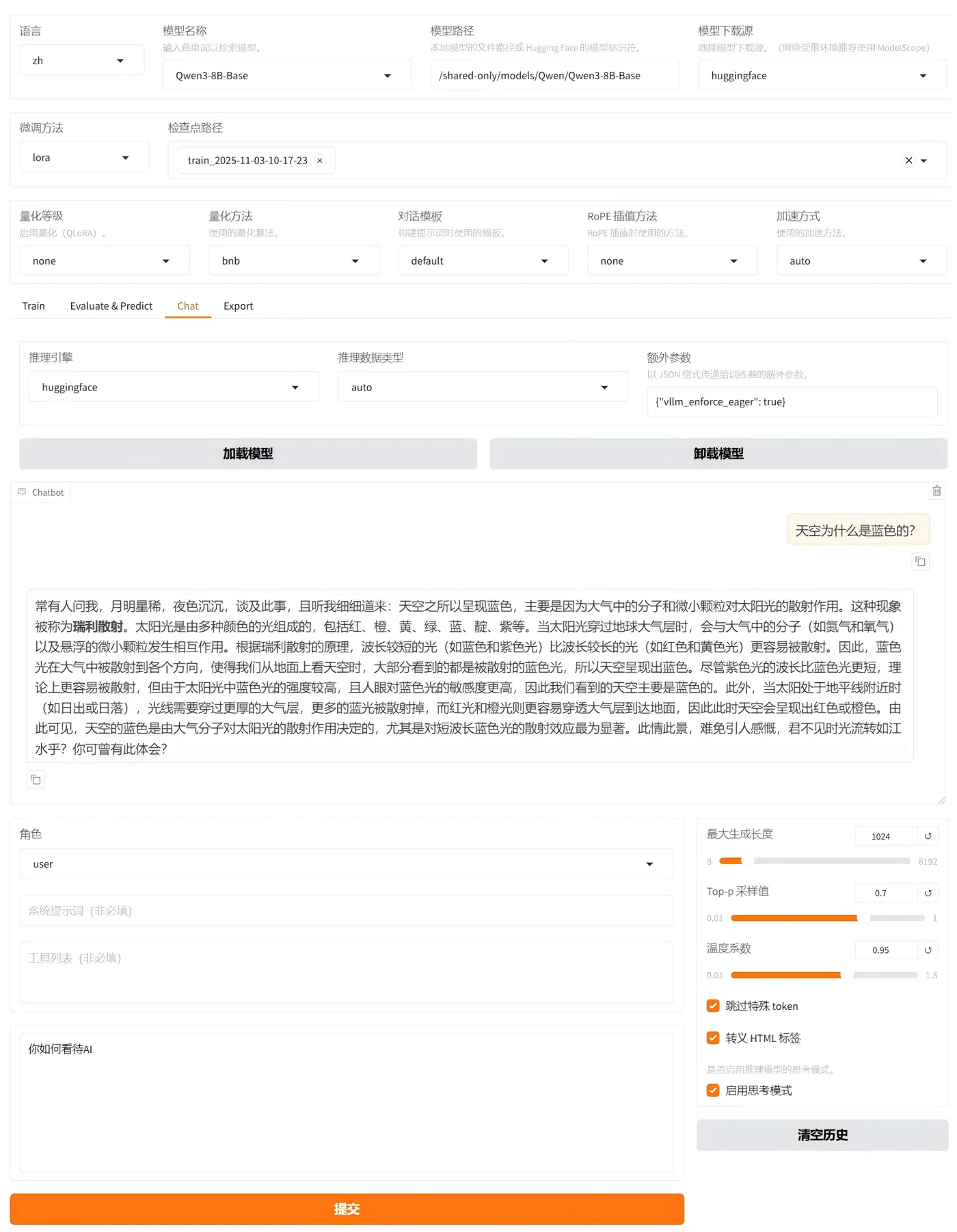 本次实践验证了LLaMA-Factory的通用性:同样的结构可快速迁移至其他历史人物或文化场景中,支持从“角色复刻”到“风格生成”的多层次扩展。无论是数字文博、AI 教育,还是文化 IP 运营,都能借助此框架构建专属智能体。