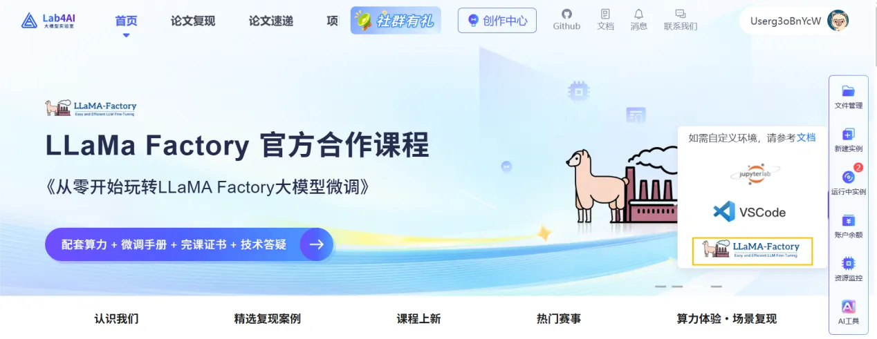 借助LLaMA-Factory提供的统一接口,无需复杂的脚本编写,即可完成从模型加载、数据模板化到LoRA参数配置的全过程,现在实验可直接在Lab4AI平台中一键运行。