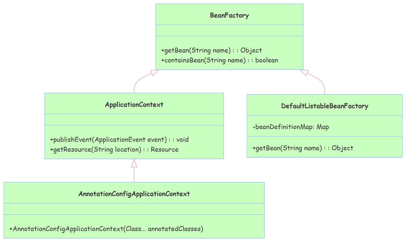 BeanFactory 是最基础的 IoC 容器接口,提供了延迟加载、作用域控制、依赖查找等核心能力,适合资源受限环境;