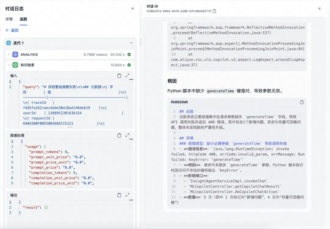 其他流程节点也都会采集节点的输入输出、会话ID、用户ID 等必要数据。