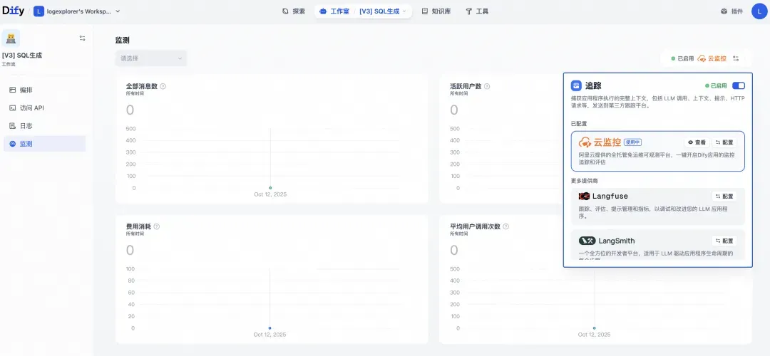 1.登录Dify控制台,并进入需要监控的Dify应用。