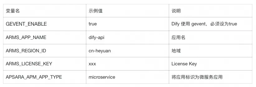 # 使用aliyun-instrument启动 exec aliyun-instrument gunicorn \ --bind "${DIFY_BIND_ADDRESS:-0.0.0.0}:${DIFY_PORT:-5001}" \ --workers ${SERVER_WORKER_AMOUNT:-1} \ --worker-class ${SERVER_WORKER_CLASS:-gevent} \ --worker-connections ${SERVER_WORKER_CONNECTIONS:-10} \ --timeout ${GUNICORN_TIMEOUT:-200} \ app:app