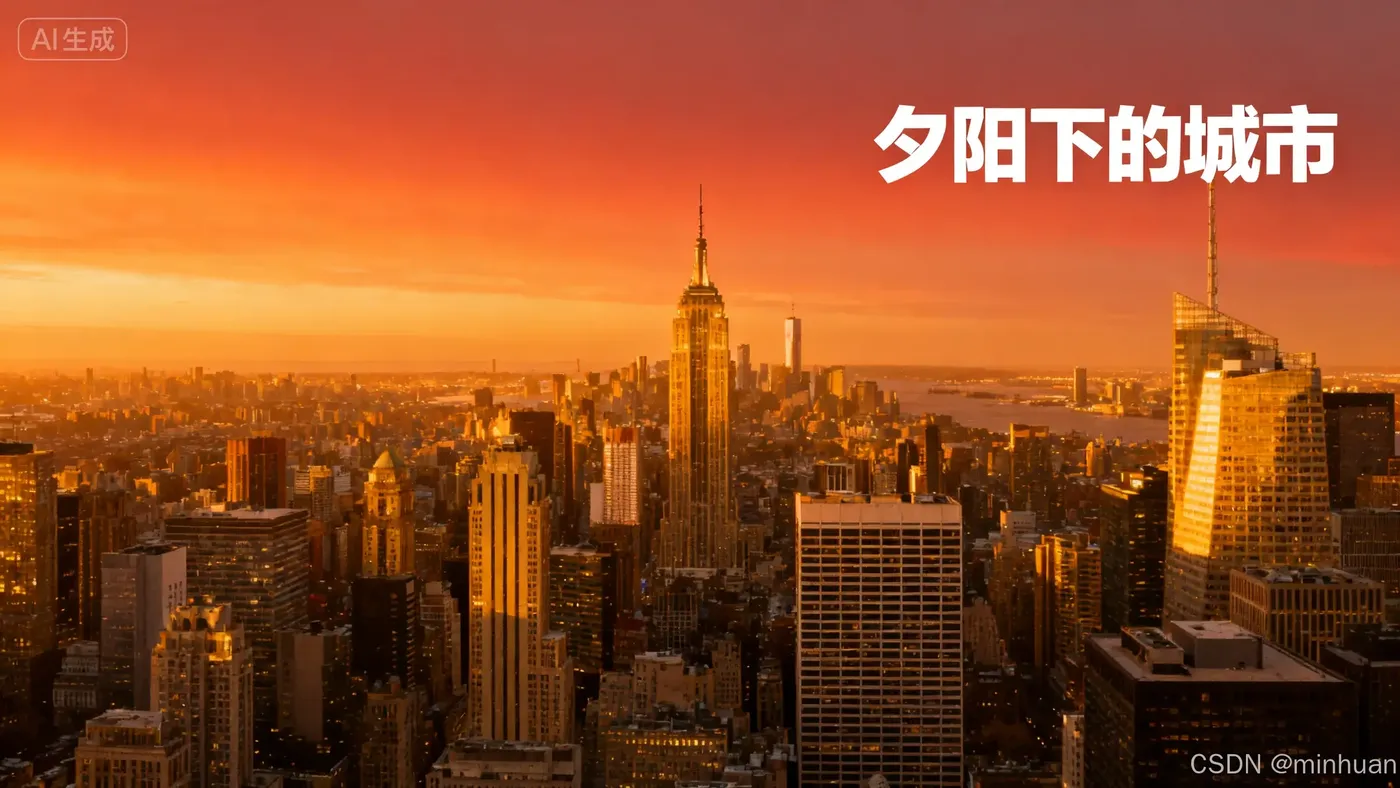 基础提示:"夕阳下的城市"