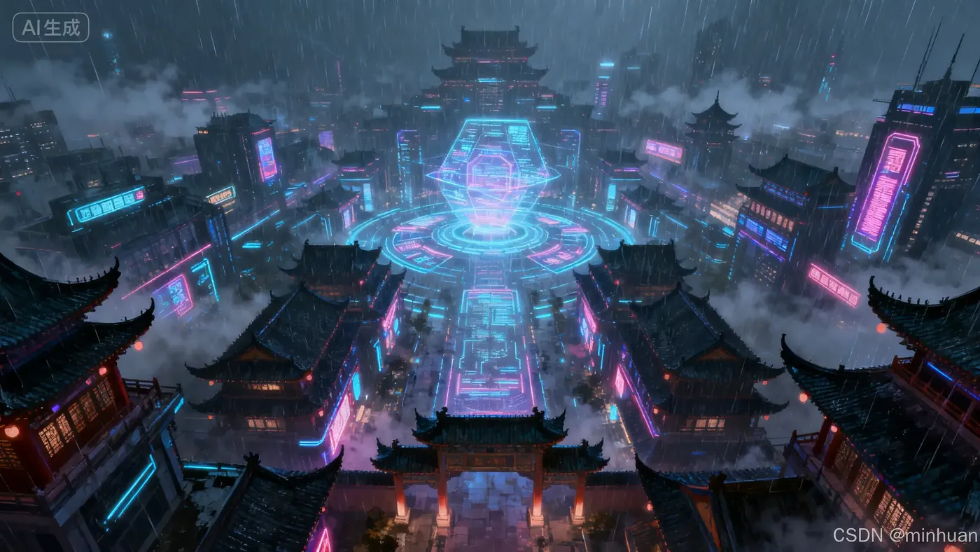 - 示例构思:想要创作一个"未来中国风城市夜景"