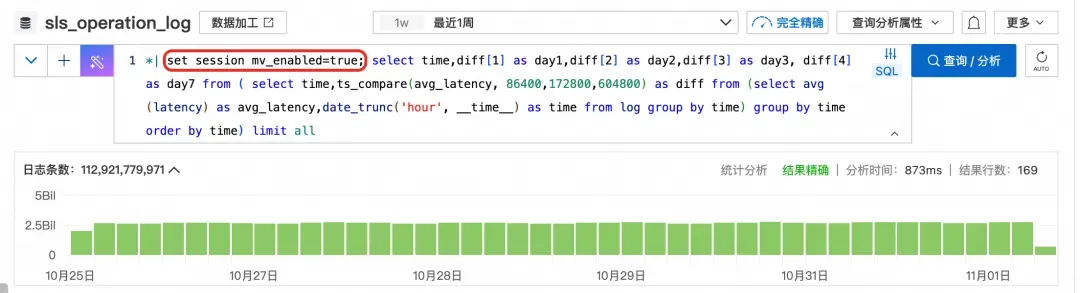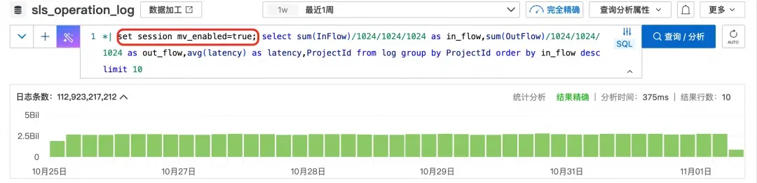 有趣的是,创建物化视图时写的 SQL 和系统实际执行的 SQL 并不完全相同。这正是阿里云日志服务强大的智能优化器在幕后工作——它能自动识别和改写查询逻辑,让用户无需深入了解底层细节,就可以轻松为仪表盘查询加速。