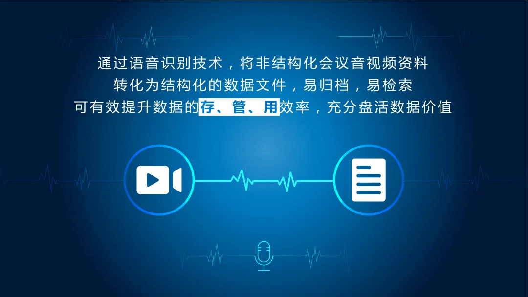 图片展示了典型的会议音视频转写流程:将非结构化的音视频转化为易检索、易归档的结构化文本数据,契合 SmartJavaAI 语音识别模块的定位。