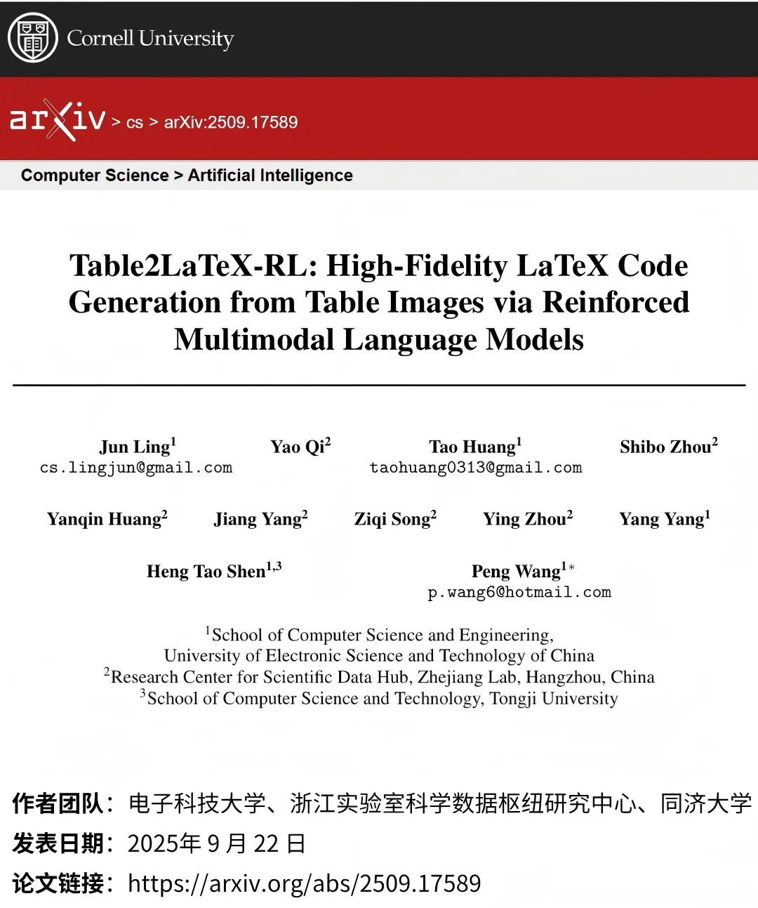 论文标题:Table2LaTeX-RL: High-Fidelity LaTeX Code Generation from Table Images via Reinforced Multimodal Language Models