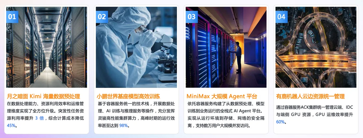 目前,阿里云容器已在国内多个行业的 AI 场景中规模化落地,服务月之暗面 Kimi、小鹏汽车、MiniMax 以及有鹿机器人等一众客户。